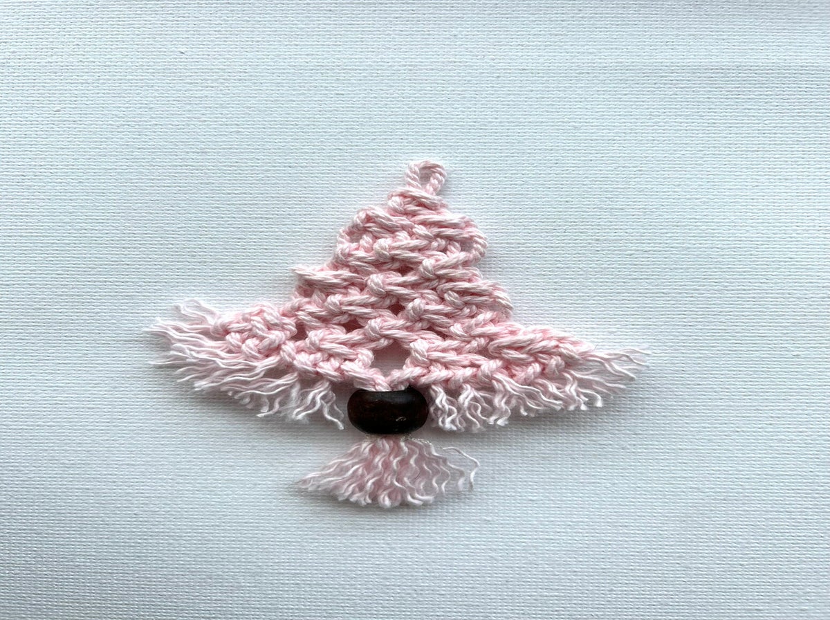 Deze kleine kerstboompjes zijn gemaakt doormiddel van een haaktechniek. Er zit een klein lusje aan de bovenkant, waardoor je het kunt ophangen. De frutseltjes aan de onder kant van de kerstboom maken het kerstboompje speels. Ze zijn in verschillende kleuren verkrijgbaar.