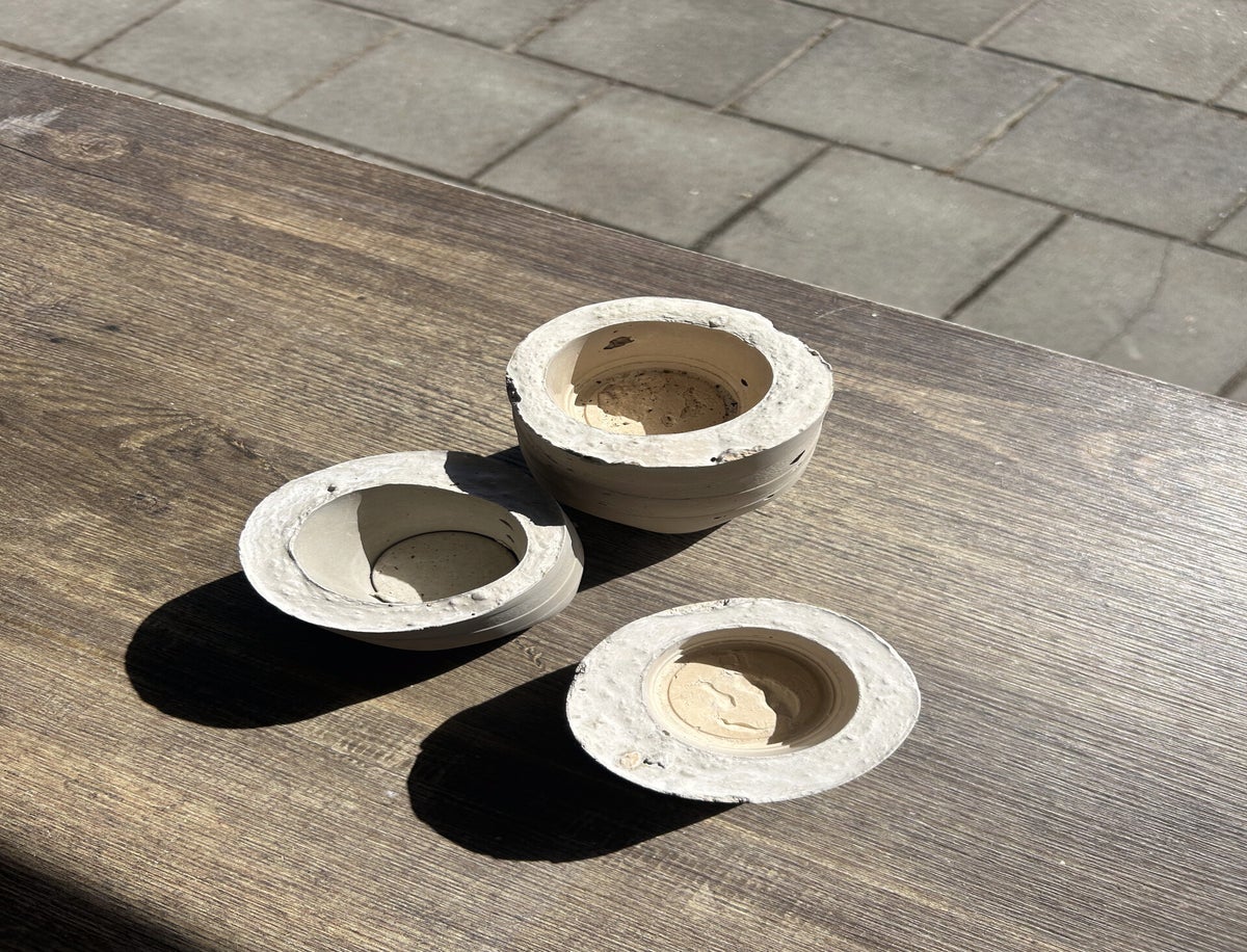 Xavier is een van onze handige mannen, dus hij vond het tijd om gebruik te gaan maken van het cement. Dus hij vulde verschillende soorten petflessen en het resultaat is te zien op de foto's. Namelijk de Xamentjes. Je kunt er cactussen in doen, maar ze zijn ook leuk aan te kleden met kaarsjes. We hebben ze in verschillende vormen en maten.