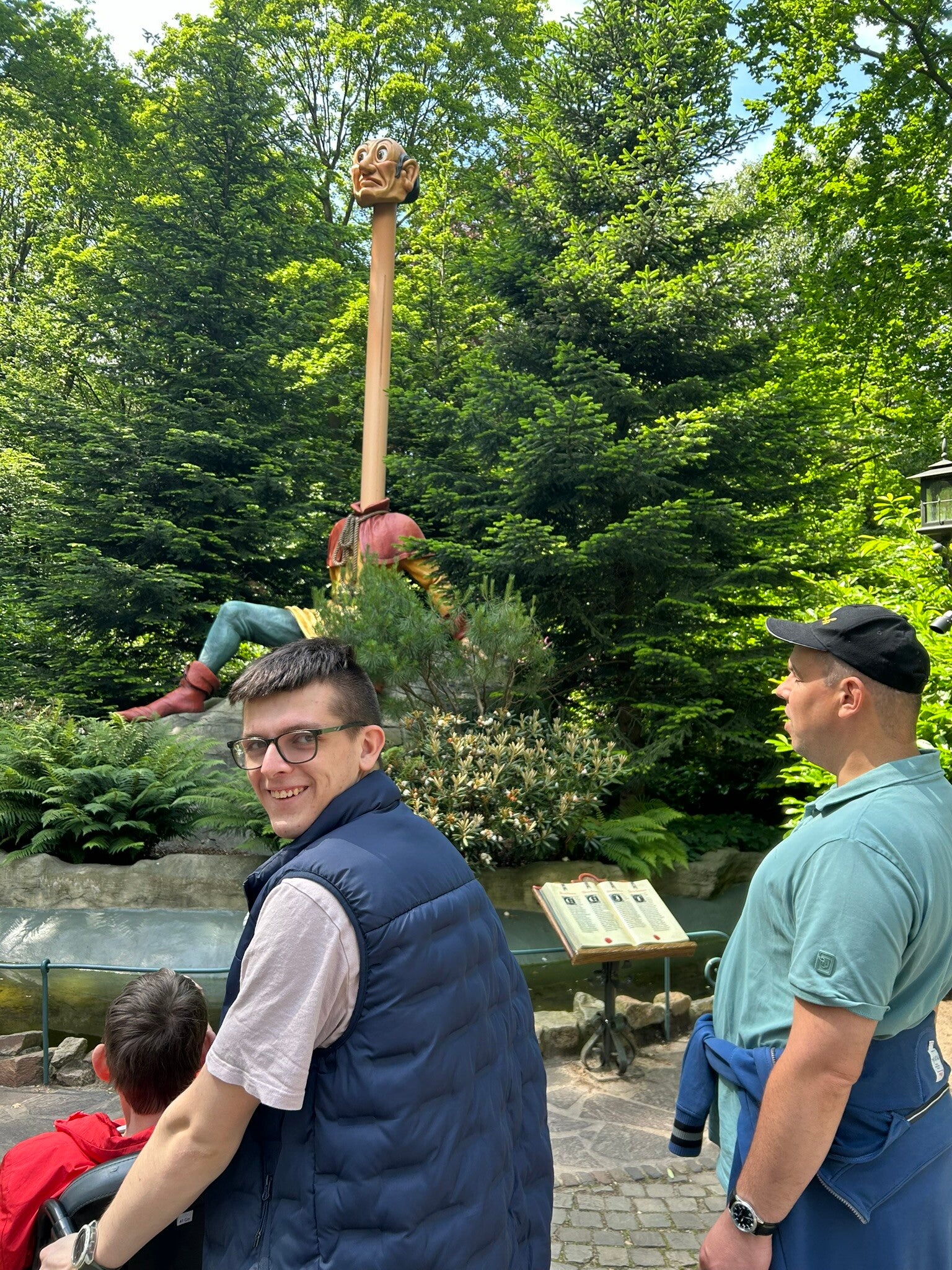 Daarna zijn we nog met z'n allen naar het Sprookjesbos geweest en hebben we Roodkapje proberen wakker te maken. Dat lukte helaas niet, dus zijn we maar gaan praten tegen Lang Nek.